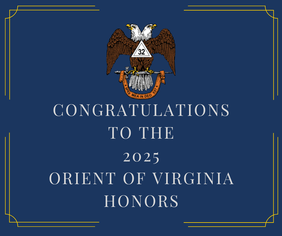 2024 Orient of Virginia Fellows with SGC Cole, SGIG Adkins, and Orient Personal Representative Ill Parker.
